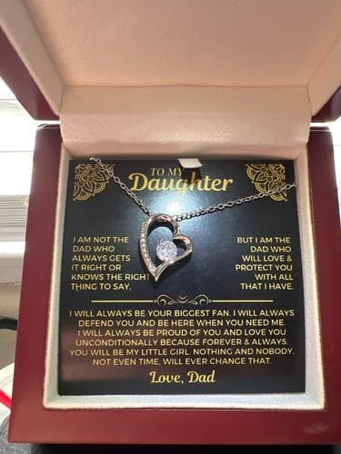 I am not the Dad who always gets it right or knows the right thing to say. But I am the Dad who will love & protect you with all that I have. I will always be your biggest fan. I will always defend and be there when you need me. I will always be proud of you and love you unconditionally because forever and always you will be my little girl. Nothing and nobody, not even time, will ever change that. Love, Dad.